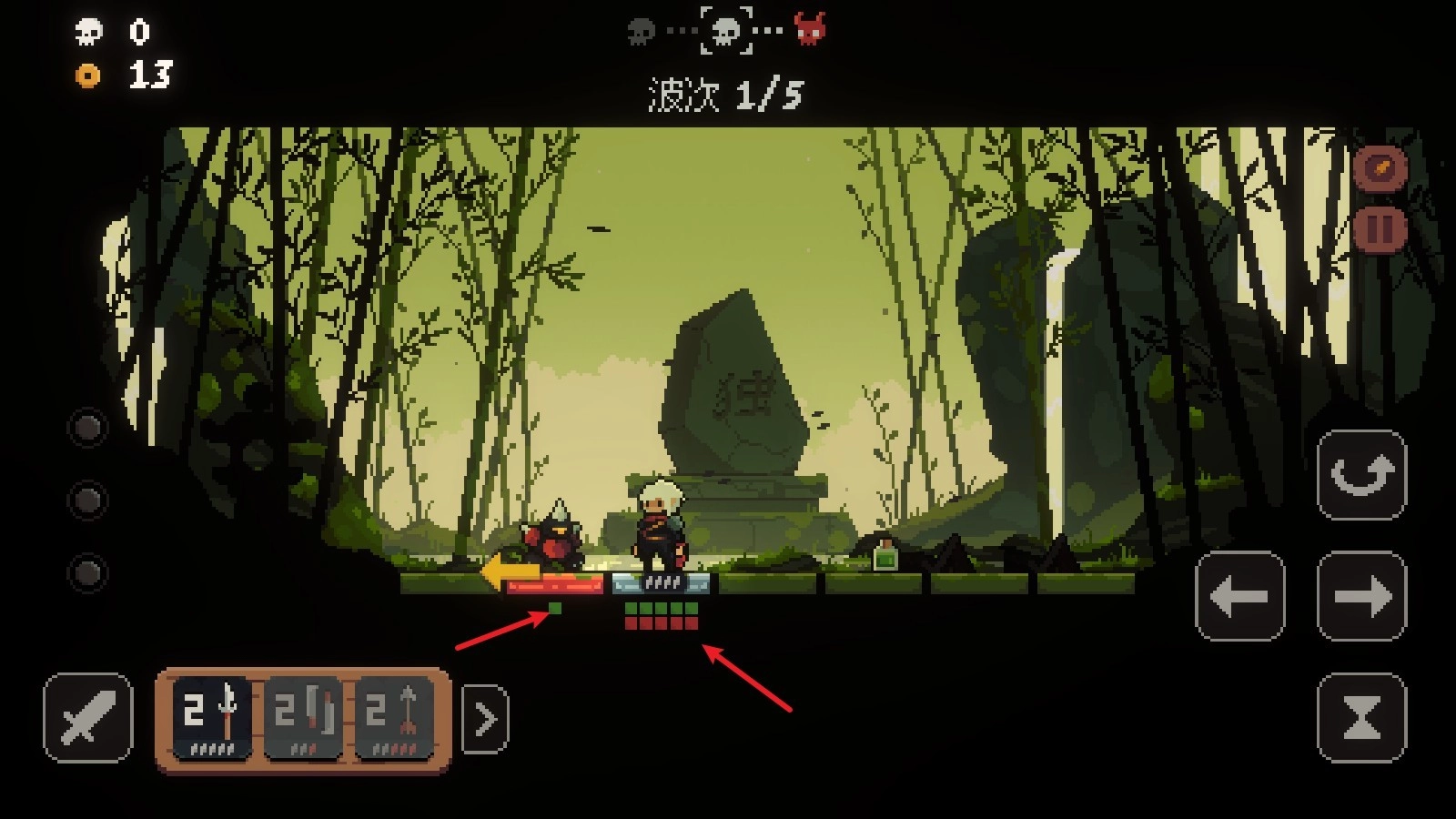 5、角色下方的绿色格子代表生命值,只要通过攻击把敌人的生命值打至零就能成功消灭对方。