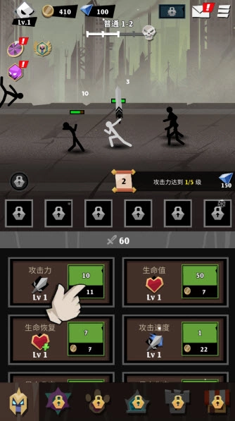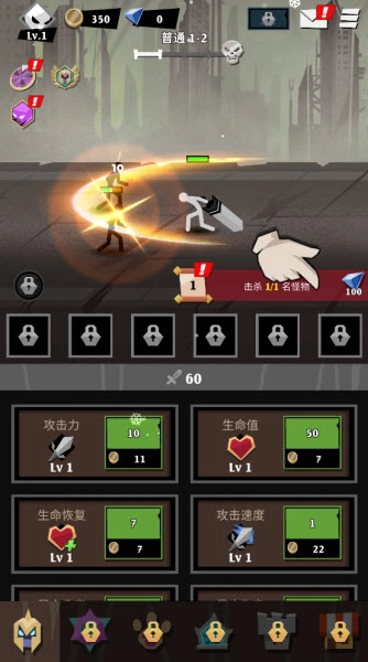 1、进入游戏后,火柴人会直接开启战斗,你只需点击屏幕里的任务,就能领取对应的任务奖励。