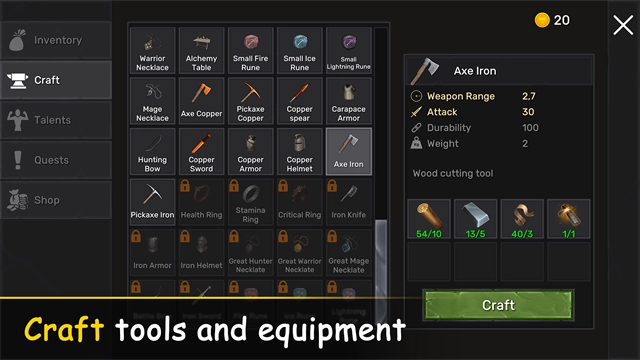 【制作建造】学做武器工具盔甲,收集材料建基地。
