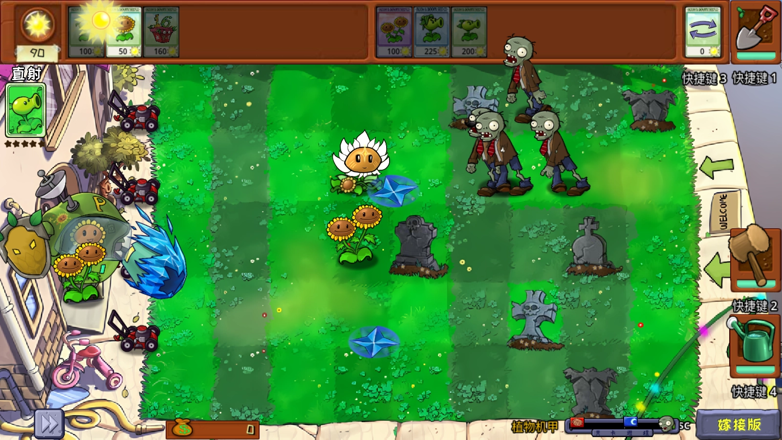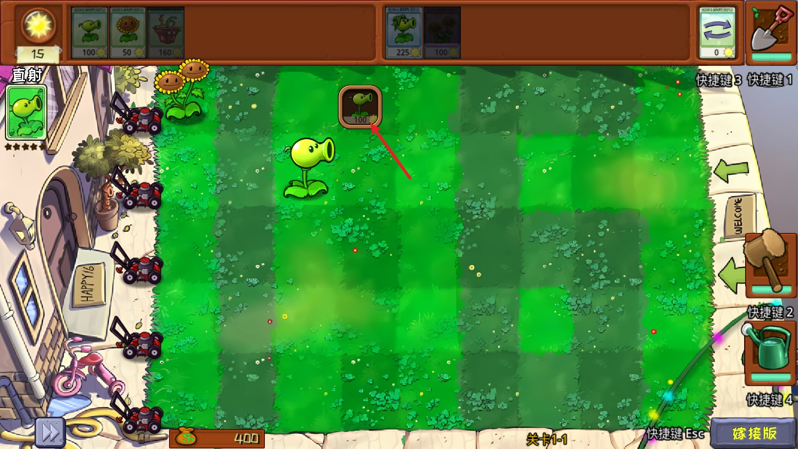 4、正式开始后,我们在种植植物后,点击它就能够继续花费阳光对其进行嫁接。