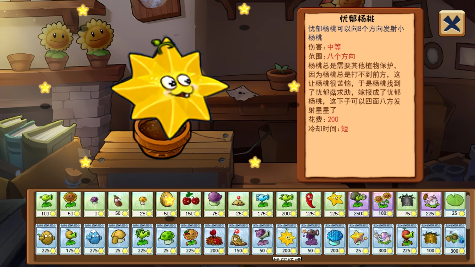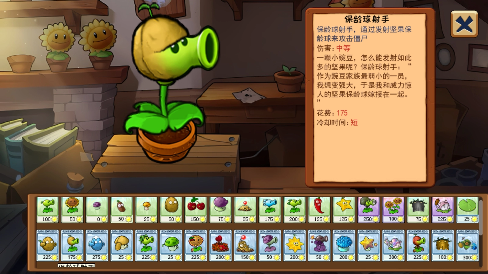 在开始游戏之前,我们能够正常挑选植物来参与挑战。