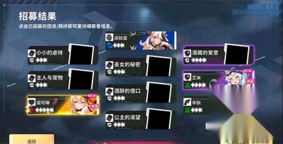 【招募机率UP】组合招募开放,可从列表内选择 3 名团员进行招募机率 UP。