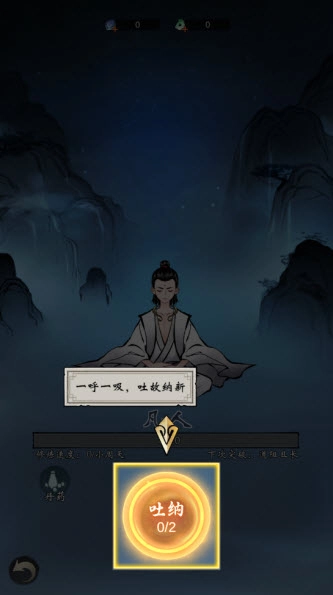 4、点击屏幕下方的洞府按钮,进入修行界面,吐纳修行。