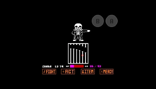 2、该模式为最为经典的剧情,游戏内玩家需要操控爱心躲避骨刺的攻击,但骨刺的移动速度较快,玩家触碰后会失去一部分的生命值。