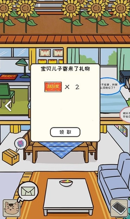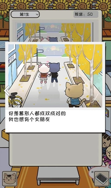在这个场景里,玩家将化身家长,要做的就是牵挂在外求学的猫咪孩子。你可以给他邮寄生活用品,也能通过短信和他交流,时刻留意他的日常起居。