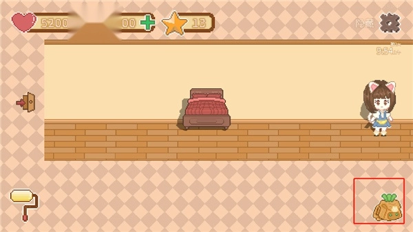 3、然后点击进入自己的新家,有点空旷,我们点击背包,开始装修新家。
