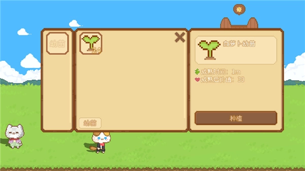 6、然后点击放置好的盆栽,它会自动转到玩家所拥有的的作物背包里,点击种子即可,种植成功,点击萝卜即可收取。