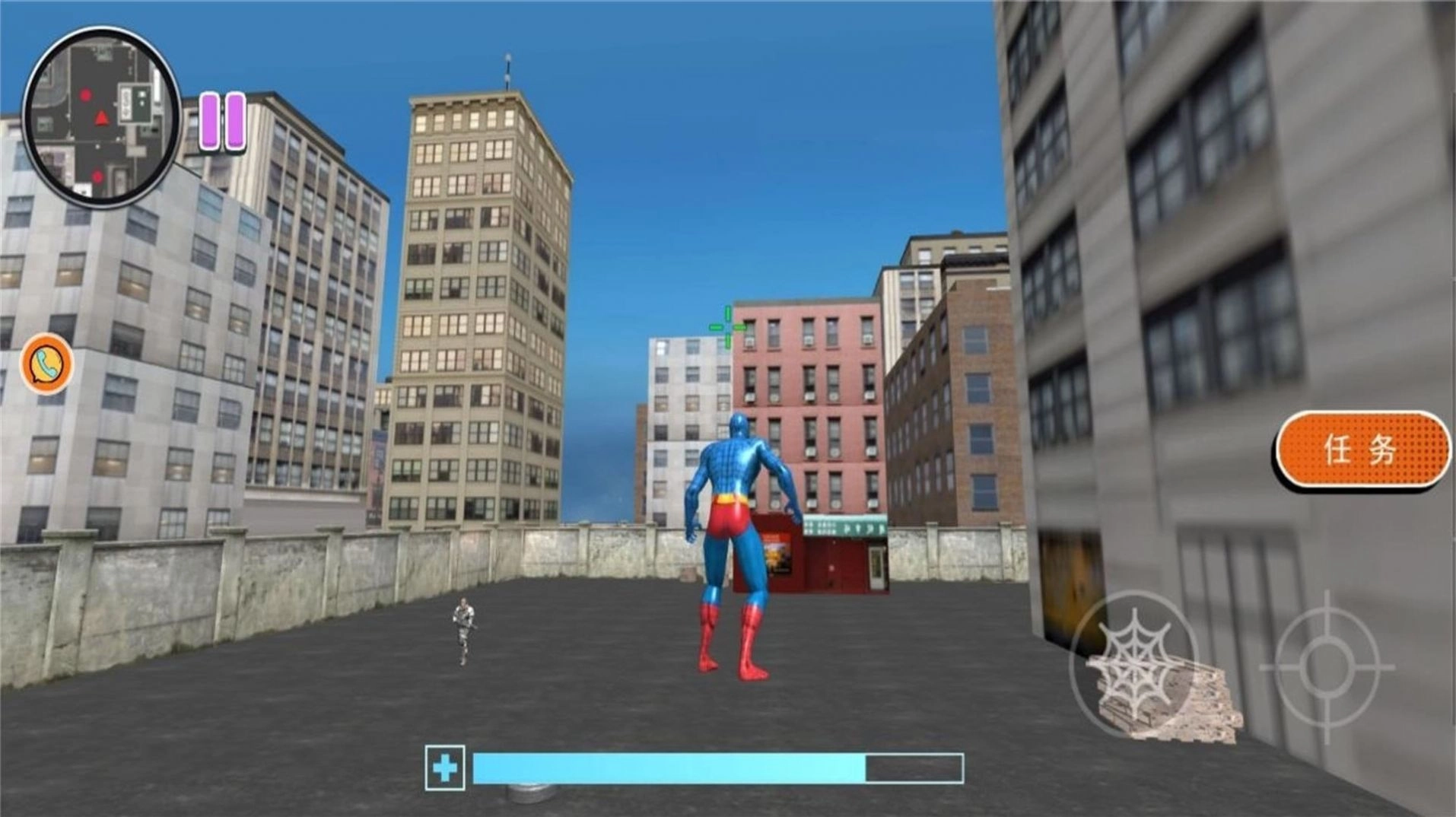 1、变形英雄生存游戏的请展示你的飞行绳索能力,通过城市,到达城市的高楼。