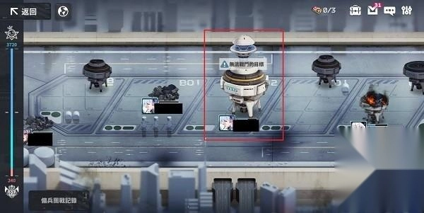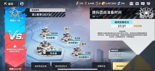 1、首先,GVG界面映入眼帘,右上方呈现的是敌方的建筑群,即我们的攻击目标。其中,前线要塞I至III分别代表上、中、下三个区域