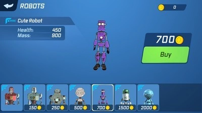 《机器人对决》是一款动作类游戏,采用竞技格斗的核心玩法。玩家开局需挑选心仪的机器人参战,同时要合理搭配武器;通过击败对手赢得更多金币后,就能解锁强力武器,而不同的武器会为玩家带来各异的游戏体验。