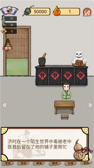 2、进入游戏后,在一个陌生世界中毒,被老中医救下后留在铺子里帮忙。