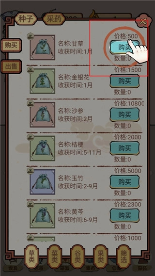 4、这里能购买和出售物品,购买需要的种子。