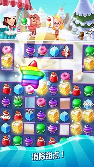 1、创新玩法机制:消除2×2规格的糖霜管,为顾客开辟通路,寻找隐藏在甜点下方的伙伴