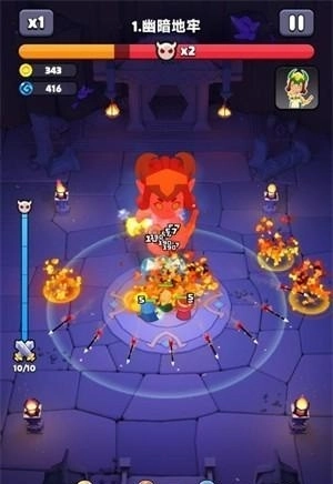 3、选好英雄后,角色会自动攻击出现的怪物,击败怪物就能获得经验。