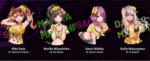D4DJ是由24名女DJ组成的个性女DJ乐团,包含Hy Around!、Peaky P-key、Photon Maiden、Merm4id、RONDO和Lyrical Lily!每个团体都有独特且帅气的DJ音乐风格,DJ玩家能够通过知名声优的“全语音”演出以及Live2D生动的表演,与每位女DJ展开最真实的互动和连结。