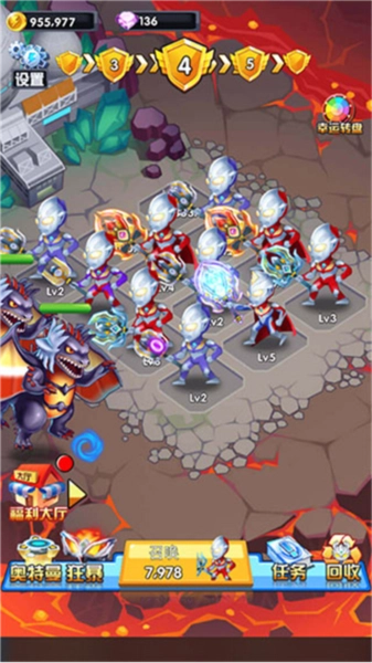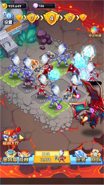 3.游戏关键是合理布局!将奥特曼拖到有颜色的区域,他就能升级!每次升级都提升攻防,是对抗强敌的关键。注意不同颜色可能有不同效果哦!