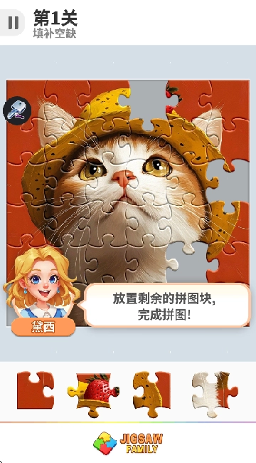 3、第一关还是很简单的,观察一下图片的位置,通过想象就可以填补剩下的空缺了