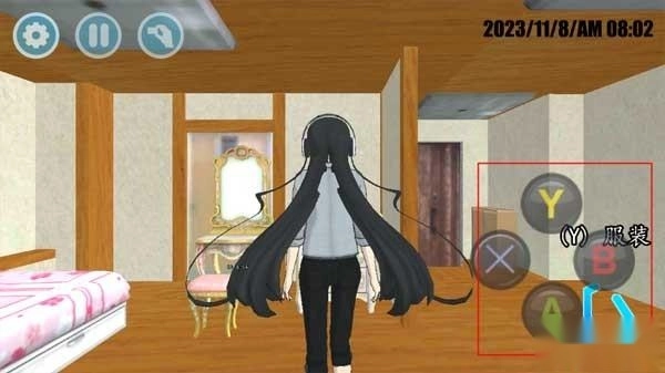 2、角色右边的功能选项根据位置、场景的不同,使用情况也不一样。A键就是跳跃按钮。而比如Y在家就是服装功能。点击Y能够不断切换自己喜欢的服装,就跟装扮游戏类似。