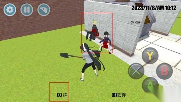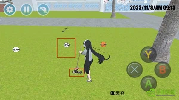 5、角色靠近学校里的武器、体育器材、道具等,同样还是捡起和丢弃功能按钮。