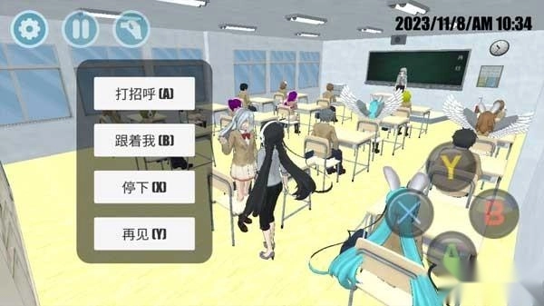 8、玩家跟随NPC进入课堂里,和NPC对话同样还是点击Y,根据选项的不同点击相应的按钮。