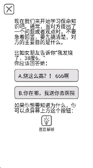 2、实用的“情商”锻炼:被誉为“直男必备”,能在轻松的氛围中帮助玩家增长沟通经验,了解伴侣思维模式。