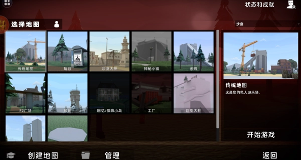 3、游戏提供了很多的地图,有传统地图、沙漠大桥、神秘小镇等。