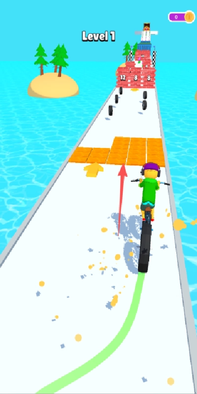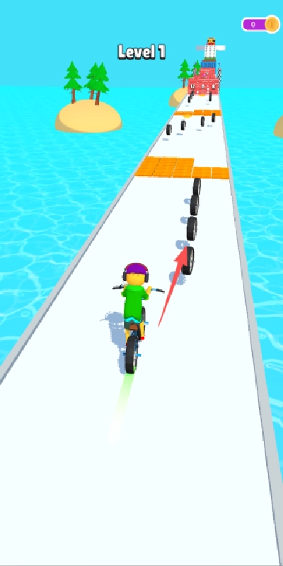 4、无需复杂操作骑上单车就能畅快开冲,赛道上的轮子是成长关键,持续收集即可让车身不断升级,解锁震撼视觉体验。