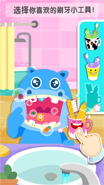 1、通过点击、拖拽等简单操作完成挤泡沫、揉搓、冲洗等清洁步骤。