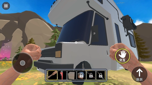 1、玩家要把湖畔房车当作基地,各自去探索周边场景来收集关键物资。通过点击互动获取工具,拖拽合成材料来修复车辆。