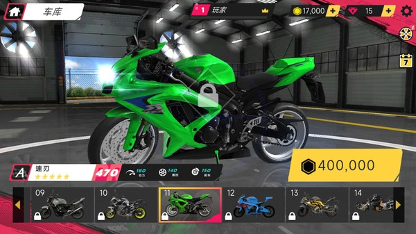 2、车库内提供越野摩托、街车等六大车系,部分隐藏车型需达成"极限腾空3秒"成就解锁。