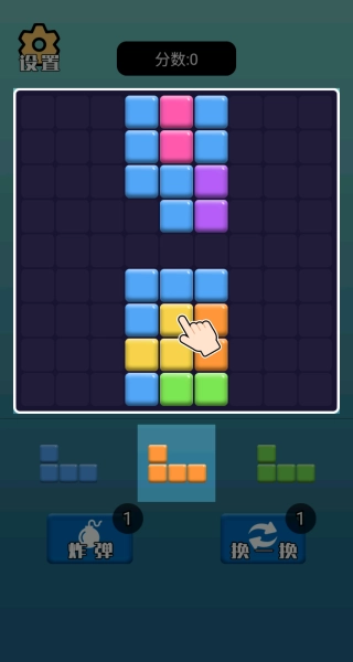 1、核心玩法为俄罗斯方块拼图消除,通过操控方块拼接成完整行列并消除,积累分数以推进关卡。