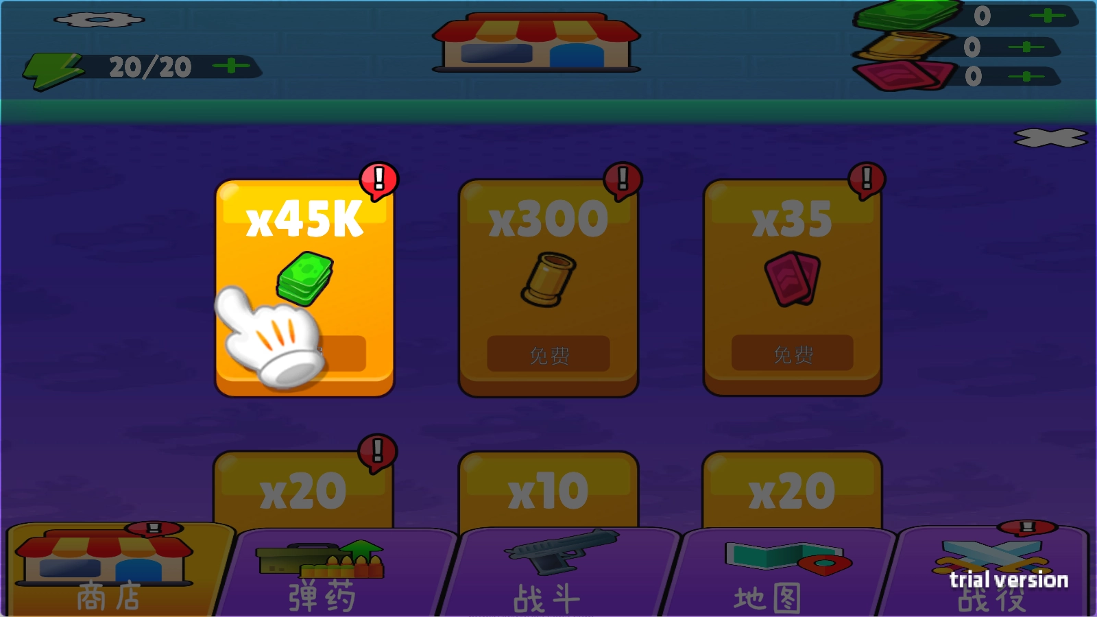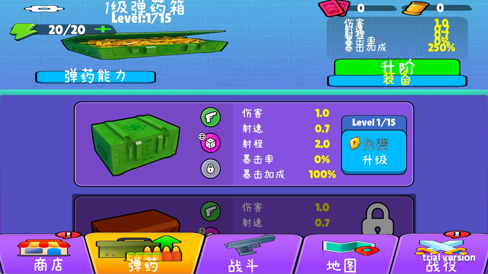 4、每关开始前可在技能树选择永久加成,例如提升射速或增加暴击概率。