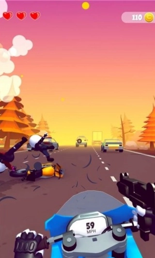 1、操作上要求玩家具备高超的多任务处理能力。左手精准控制摩托车的加速、刹车、过弯与平衡,右手则需灵活切换不同武器。
