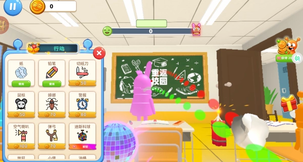 《搞怪恶作剧联盟》是一款能让你笑到飙泪的捣蛋模拟游戏——你将化身调皮玩具,在教室里掀起一场“大闹天宫”般的混乱!看着老师被恶作剧气得头发都竖起来的模样,那种整蛊成功的爽快感简直让人欲罢不能。你得和玩具伙伴们默契配合,用放屁坐垫、隐形墨水这类道具布置连环陷阱,看着老师一步步踩进你精心设计的搞笑圈套里。更绝的是,当老师的愤怒条攒满时,他会变身成夸张的怪物,那画面能让你笑到肚子痛!