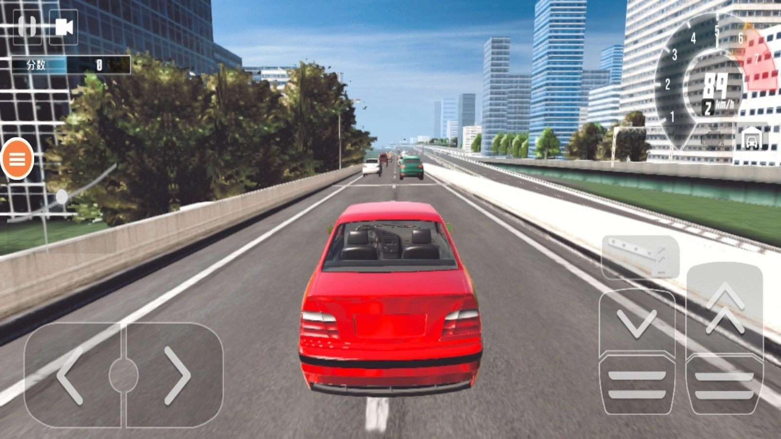 2.使用左侧的按钮控制方向,右侧控制油门和刹车。