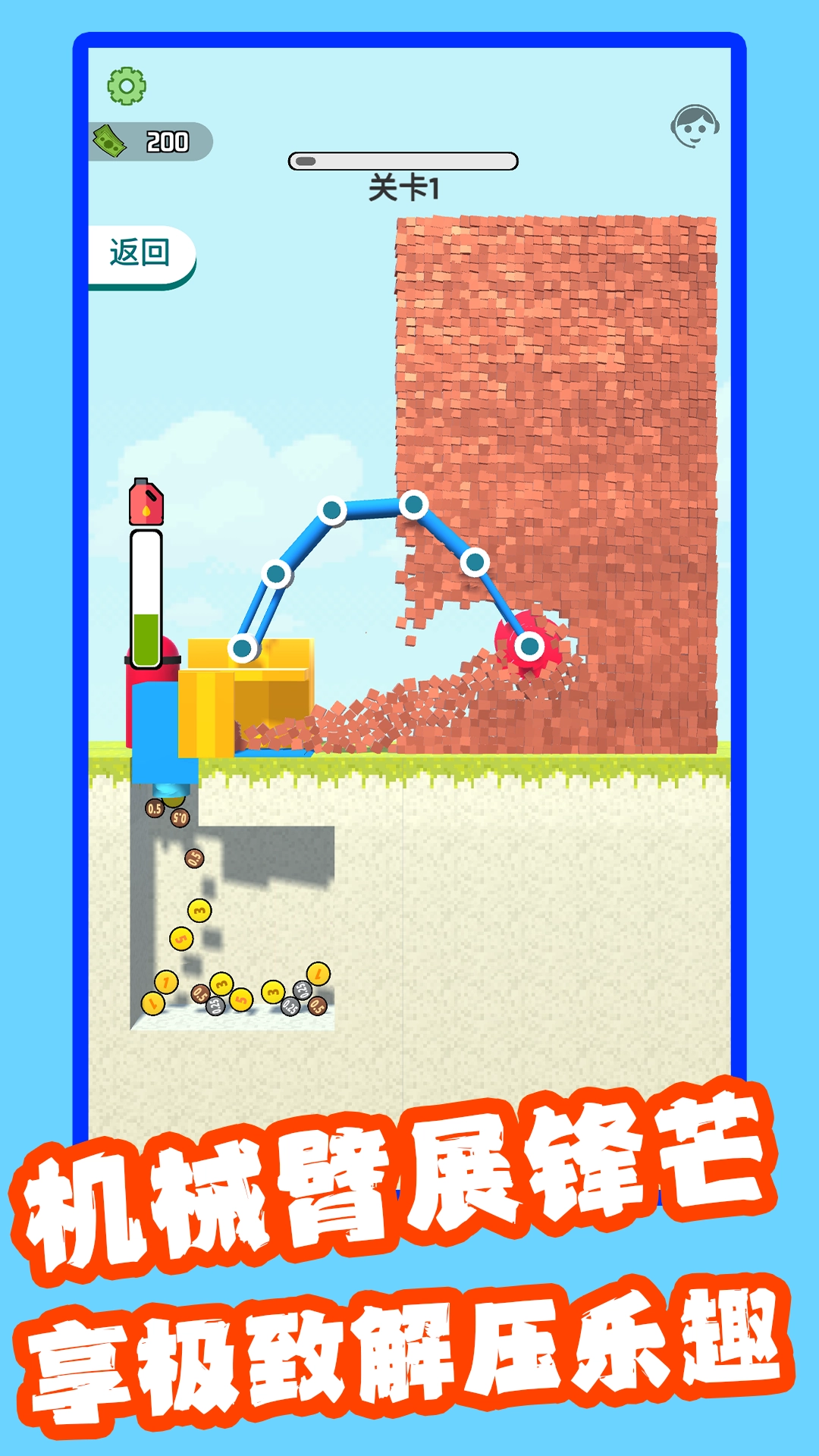 2、建筑解构:针对不同材质的墙体采用差异化的解构策略,木质结构能够快速切割,石质墙面需要多次蓄力,金属部件则要寻找特定的弱点。