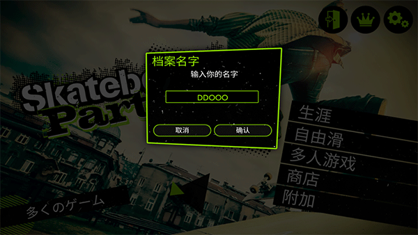 1、首先打开滑板派对2中文版后,输入你的名字;