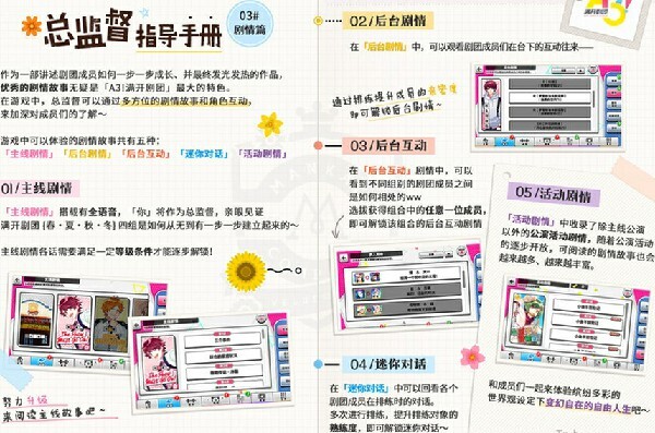 在游戏里,玩家会邂逅20位各具性格的成员,和他们一同为满开剧团的未来拼搏。颇为意外的是,《满开剧团》里角色的年龄跨度极大,人物设定并非仅局限于最热门的高中生、大学生,而是涵盖了从中学生到社会人的各类“类型”,十分丰富。