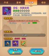 升级,可消耗金叶子对装备的基础属性进行强化,升级功能中的装备等级不能超过玩家当前的最大等级。
