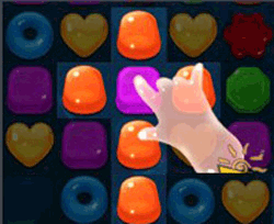 交换相邻两个糖果的位置,使5个颜色相同的糖果形成“T”、“L”或“+”型,会在交换点处形成一个特殊效 果。再次在该特殊效果上进行消除会消除掉一整行和一整列的糖果。