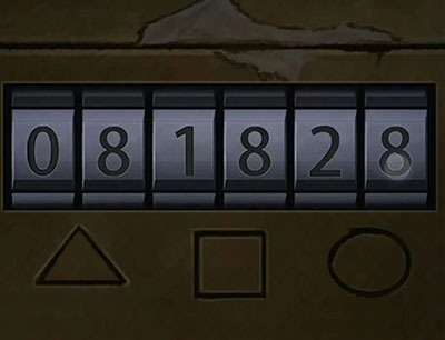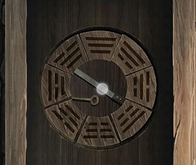 获得自由行动能力后,首先查看箱子密码。密码提示为:人头、纸人、花圈、马以及小房子。这里要注意,小房子有一个门和一个窗子。当我们观察纸房子时会发现,只有2楼的左右两侧以及3楼的右侧符合这一特征,由此可知代表房子的数字是3 。接着数一数,纸人有8或9个,花圈3个,马1个,所以密码可能是8313或者9313 。最后尝试一下,发现密码是8313 。成功打开箱子后,拿到一张八卦卷轴和第二块八卦牌。