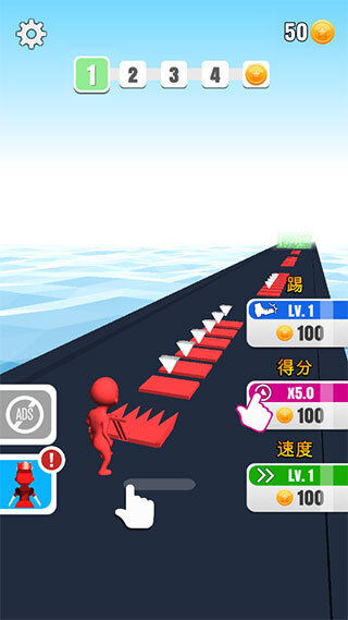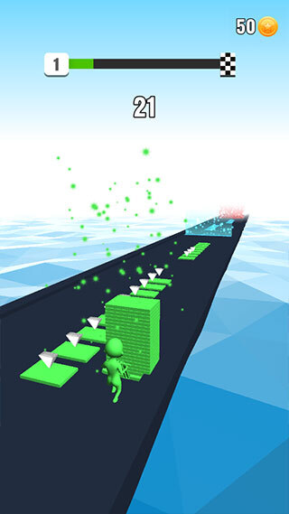 3、在正确路径上把所有砖块进行叠加,要是砖块颜色叠加出现错误,砖块数量便会相应减少。