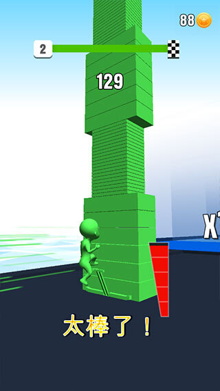 5、砖块叠加的越多那么倍数就越高,获取到的金币数也越多