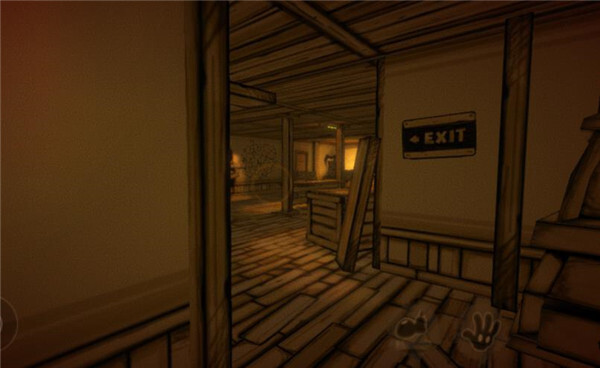 走到出口处的黑色墨水河处,遇到了一个可怕的班迪恶魔!赶紧往回逃!记得往回拐弯处逃,因为只有那一条路