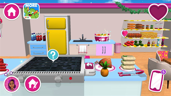 不仅如此,芭比梦幻屋游戏的自由度极高。在芭比屋内,所有物品皆能随意调配,一整套迷人的卡通芭比角色与狗狗也能随心安置。客厅、厨房、阳台等多种主题场景可交替变换,瑜伽、电脑、时髦衣服等元素可供互动搭配选择。在这里,你可以探索发掘生活的美好,寻觅自己喜爱的玩法。