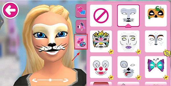 1、进入芭比梦想豪宅游戏,点击芭比头上图标,即可进入芭比换装页面
