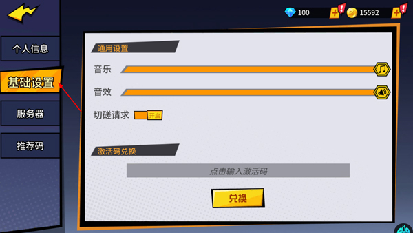2、然后点击基础设置,最后在兑换框输入兑换码即可。