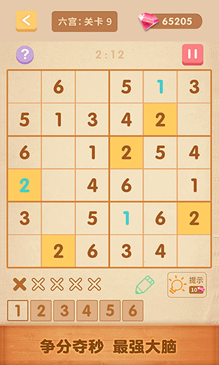 3、阅读游戏规则后即可开始,页面上方设有时间计算。通过选择空格,将下方数字填入。每关若出现三次错误便判定为失败。