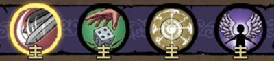 3、唤醒:关注卡牌中间的图案。选卡技巧:剑(爆伤)=人(格挡)>手(吸血、暴击、闪避)>勾玉,括号里是图案中最优属性。唤醒相关内容我会在总攻略里详细讲解,这里仅为前期选卡技巧。遇到卡关时,可考虑重新唤醒。