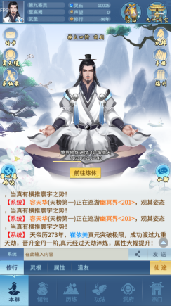 道友进入游戏后就可以开始正式的踏入仙途进行修炼,首先修炼分为炼气和炼体两种: